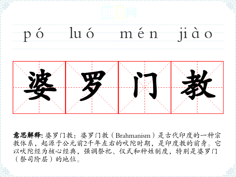 同义词:印度教(Hinduism),吠陀(Vedic Religion) 反义词:(Buddhism),耆那教(Jainism)