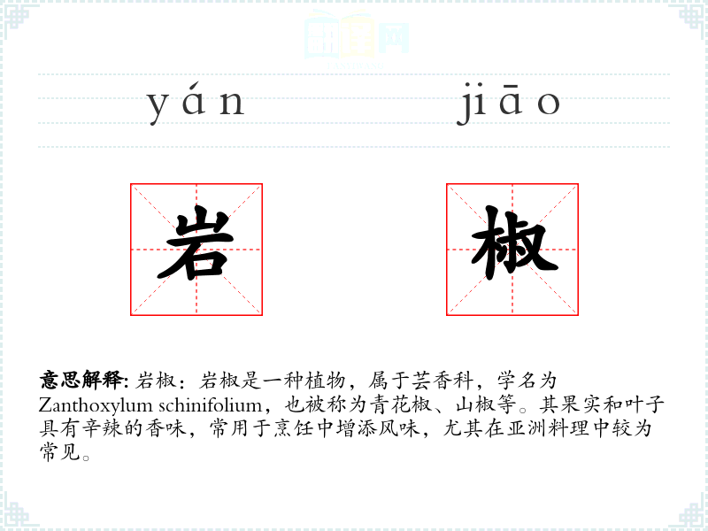 "岩椒"的意思解释、岩椒是什么意思由翻译网汉语词典查词提供。