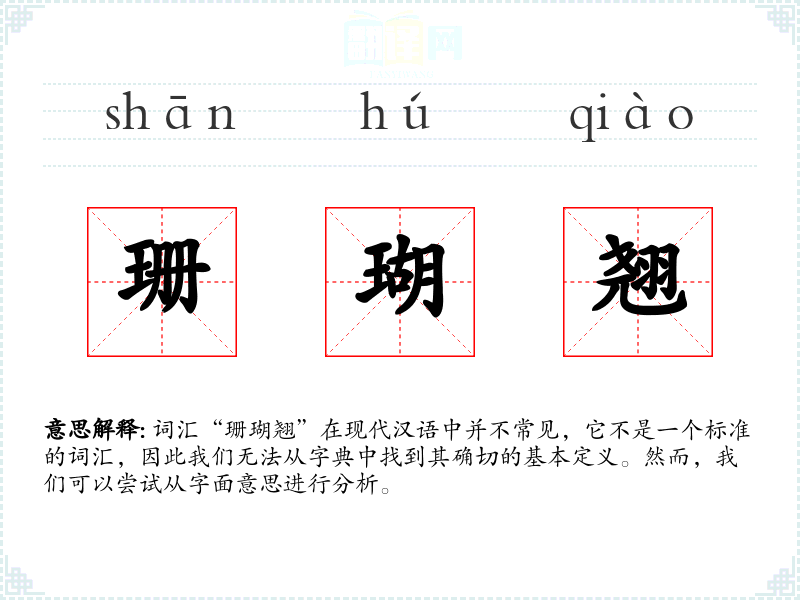 词汇“珊瑚翘”在现代汉语中并不常见,它不是一个标准的词汇,因此我们无法从字典中找到其确切的基本定义。然而,我们可以尝试从字面意思进行分析。