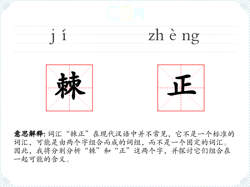 词汇“棘正”在现代汉语中并不常见,它不是一个标准的词汇,可能是由两个字组合而成的词组,而不是一个固定的词汇。因此,我将分别分析“棘”和“正”这两个字,并探讨它们组合在一起可能的含义。