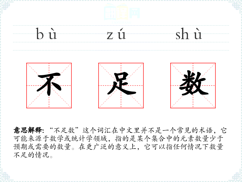 “不足数”这个词汇的词源较为直接,由“不足”和“数”两个词组成,分别表示“不够”和“数量”。在古代汉语中,“不足”一词已有使用,而“数”则一直指代数量或数学概念。