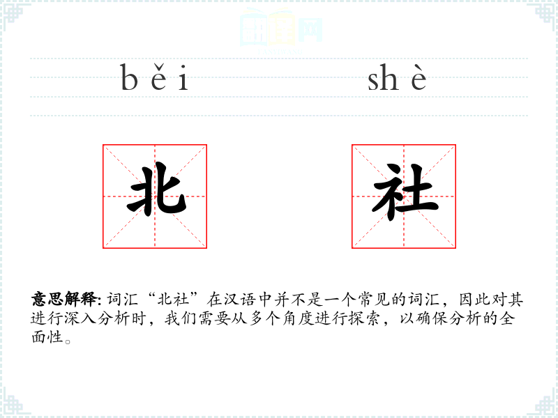 词汇“北社”在汉语中并不是一个常见的词汇,因此对其进行深入分析时,我们需要从多个角度进行探索,以确保分析的全面性。
