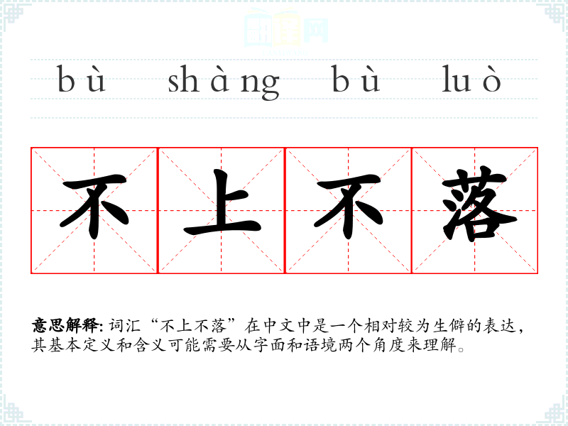 词汇“不上不落”在中文中是一个相对较为生僻的表达,其基本定义和含义可能需要从字面和语境两个角度来理解。