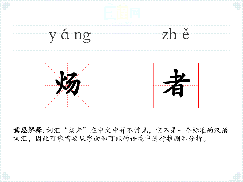 词汇“炀者”在中文中并不常见,它不是一个标准的汉语词汇,因此可能需要从字面和可能的语境中进行推测和分析。