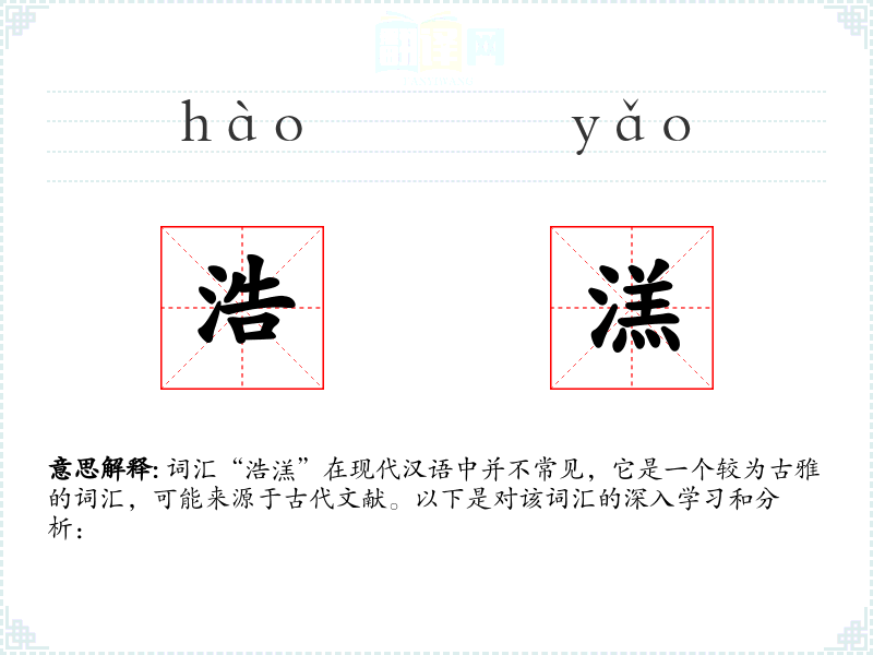 词汇“浩溔”在现代汉语中并不常见,它是一个较为古雅的词汇,可能来源于古代文献。以下是对该词汇的深入学*和分析: