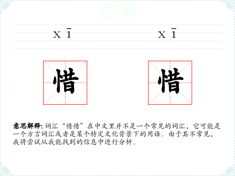 词汇“惜惜”在中文里并不是一个常见的词汇,它可能是一个方言词汇或者是某个特定文化背景下的用语。由于其不常见,我将尝试从我能找到的信息中进行分析。