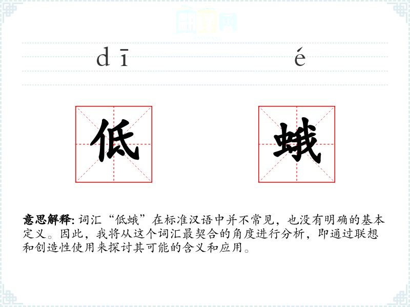 结合这两个字,我们可以推测“低蛾”可能指的是一种位置较低的蛾类,或者是在某种语境下比喻性地使用这两个字。