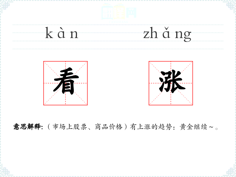 (市场上股票、商品价格)有上涨的趋势:黄金继续~。