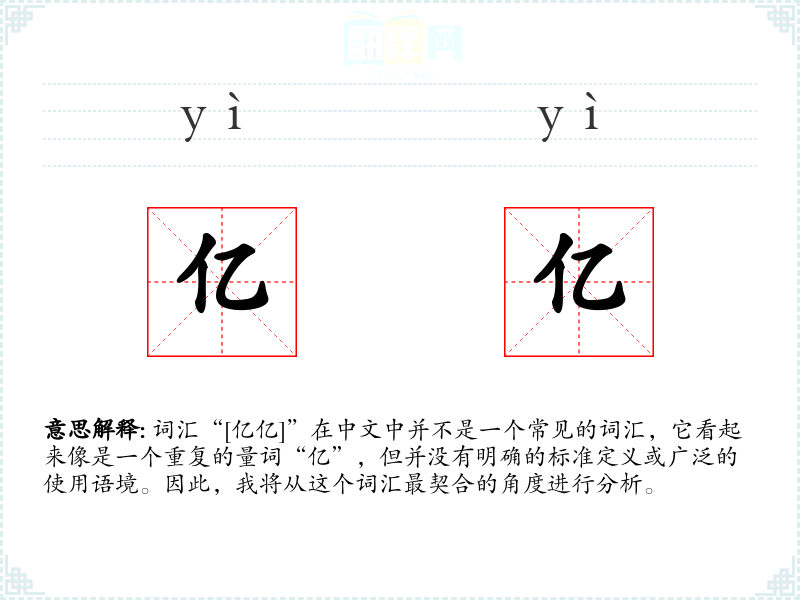 词汇“[亿亿]”在中文中并不是一个常见的词汇,它看起来像是一个重复的量词“亿”,但并没有明确的标准定义或广泛的使用语境。因此,我将从这个词汇最契合的角度进行分析。