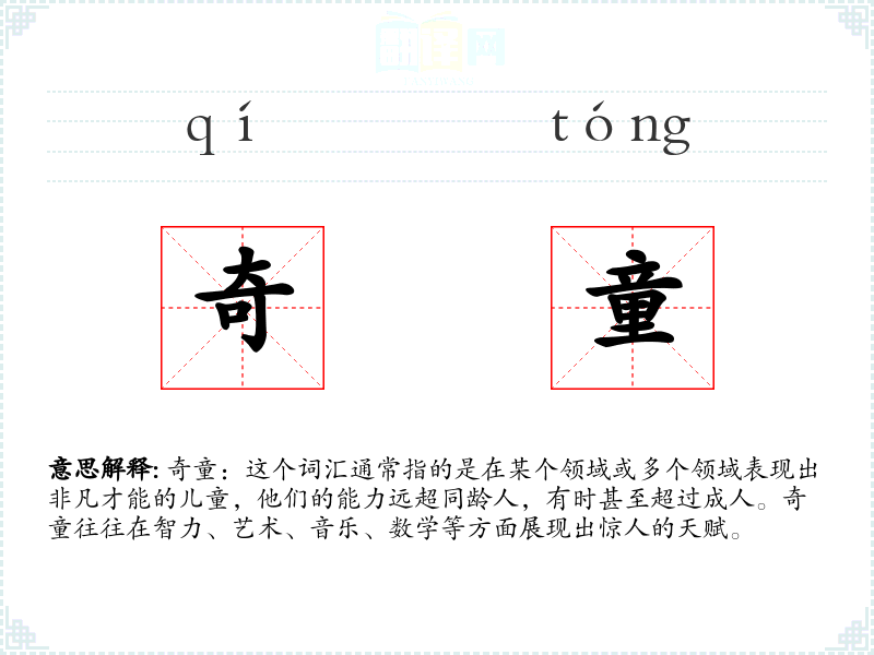 奇童一词源于汉语,由“奇”和“童”两个字组成。在古代,“奇”常用来形容不寻常或非凡的事物,“童”则指儿童。随着时间的推移,这个词逐渐被用来指代那些在某些方面表现出非凡才能的儿童。