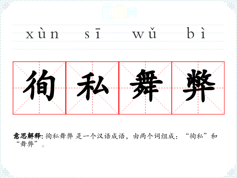 徇私舞弊 是一个汉语成语,由两个词组成:“徇私”和“舞弊”。
