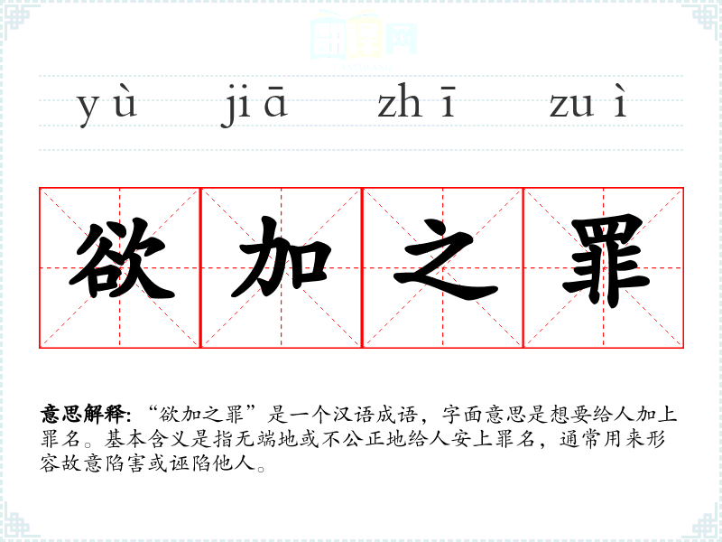“欲加之罪”是一个汉语成语,字面意思是想要给人加上罪名。基本含义是指无端地或不公正地给人安上罪名,通常用来形容故意陷害或诬陷他人。