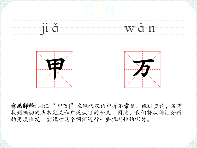 由于“[甲万]”不是一个标准词汇,我们无法给出确切的字面意思和基本含义。它可能是一个特定领域或方言中的词汇,或者是某个特定社群中的俚语。