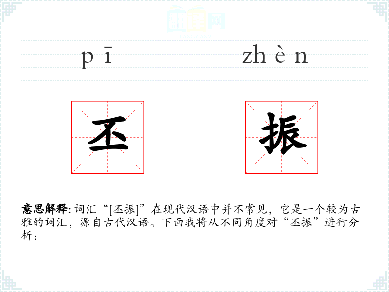 词汇“[丕振]”在现代汉语中并不常见,它是一个较为古雅的词汇,源自古代汉语。下面我将从不同角度对“丕振”进行分析: