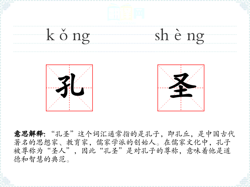 - 学生们常常在讨论儒家经典时提到孔圣的智慧。